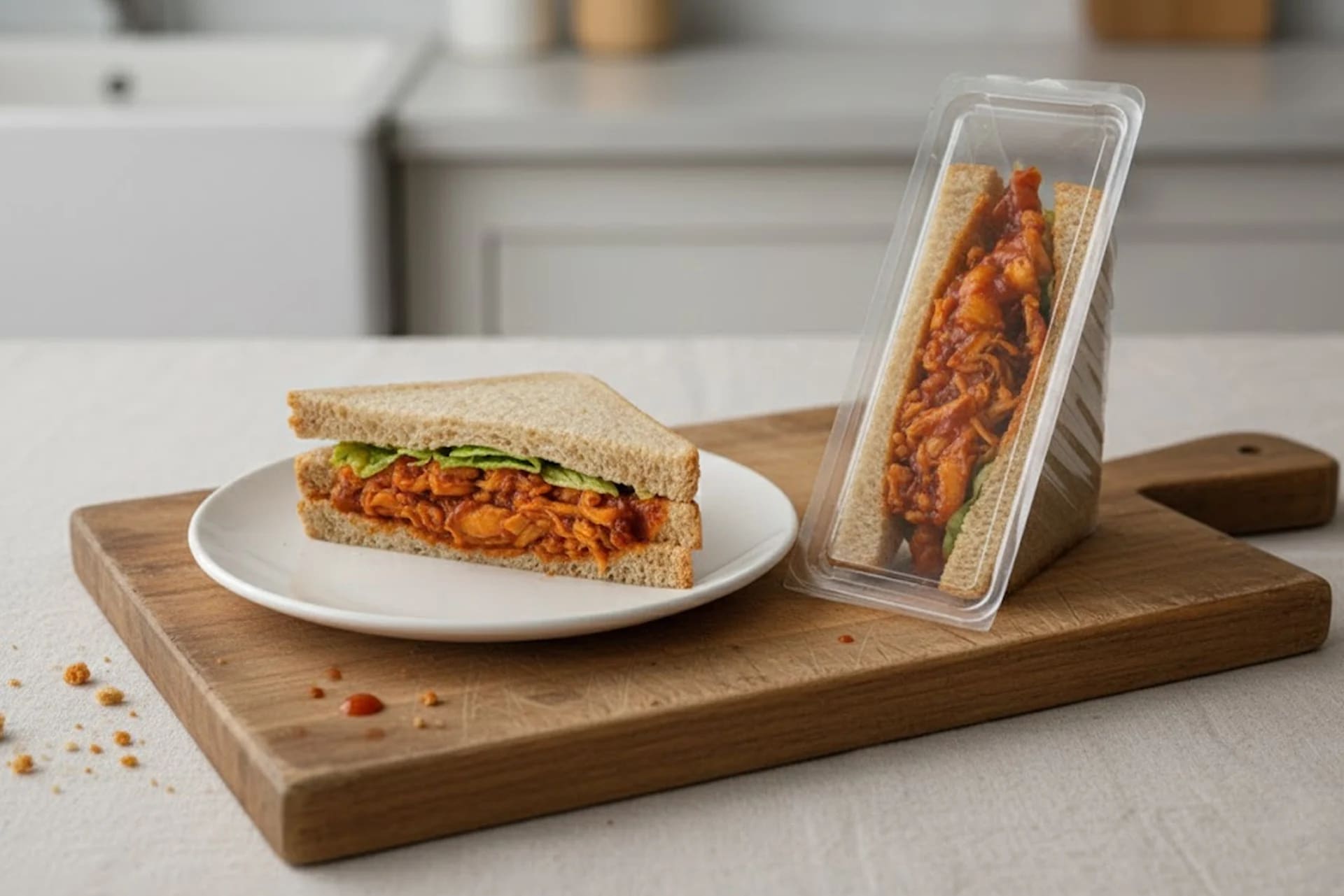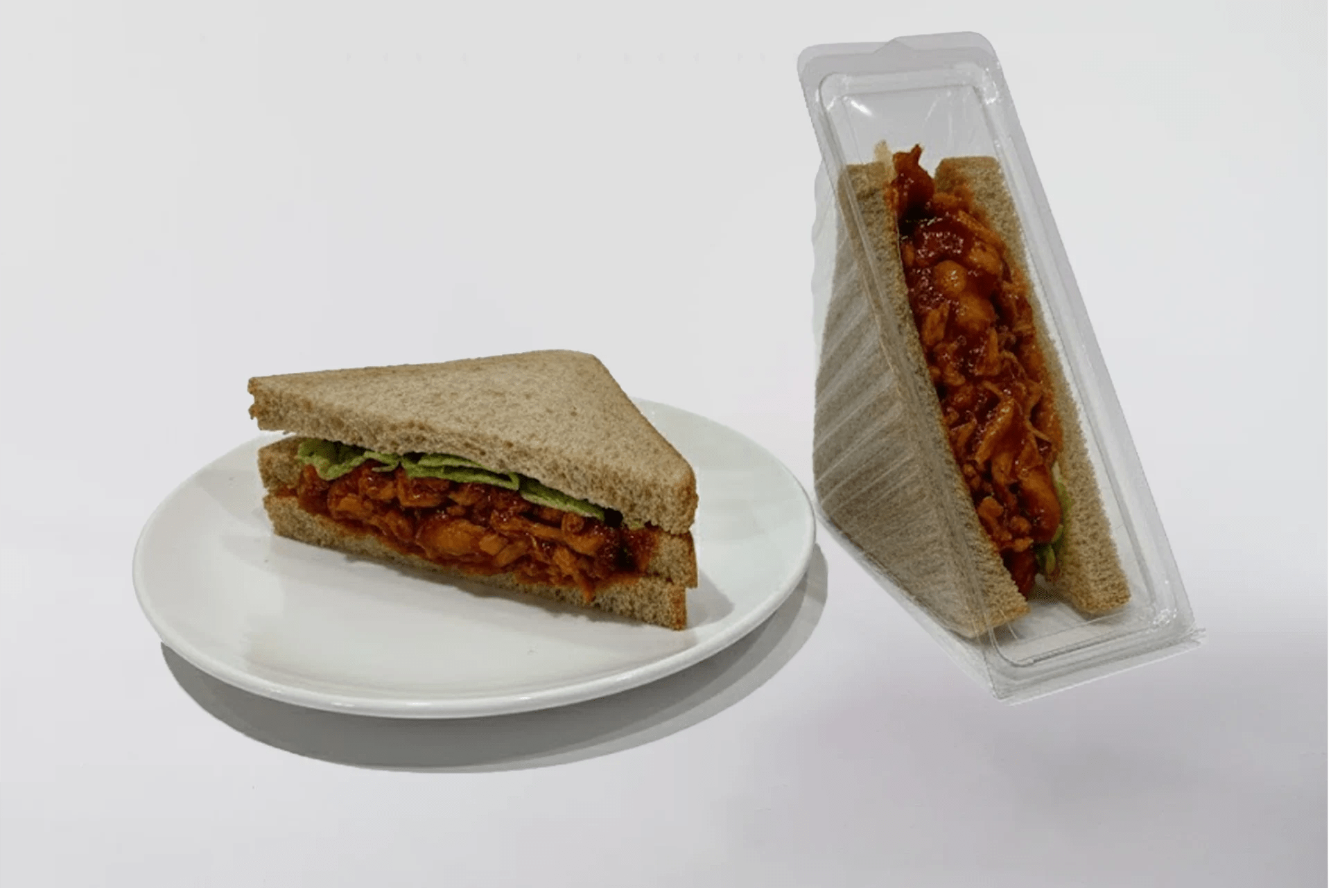 Sandwich filled with barbecue‑flavored chicken for a smoky, tangy taste.