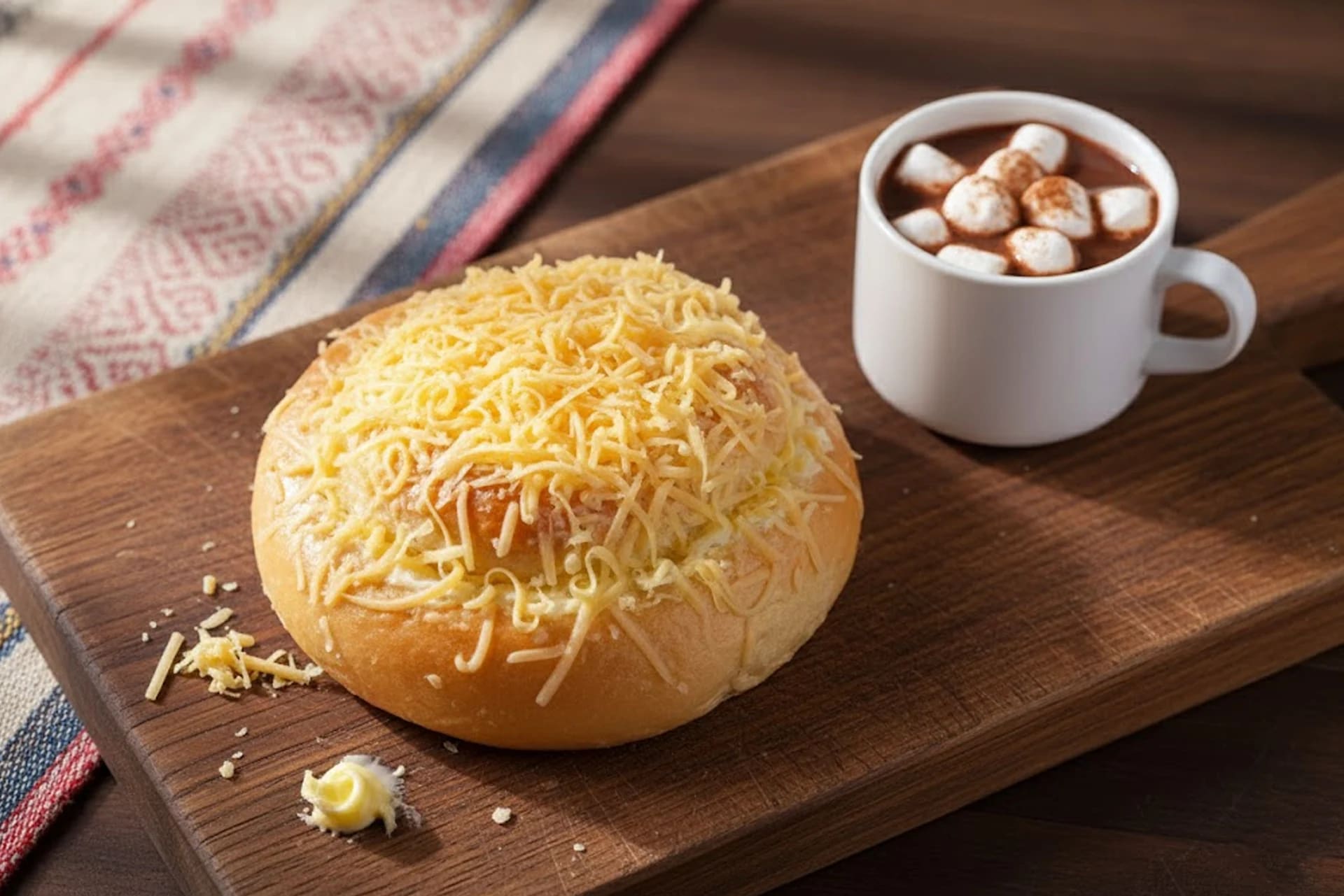 Soft, buttery brioche roll topped with cheese and sugar for a sweet‑savory Filipino favorite.