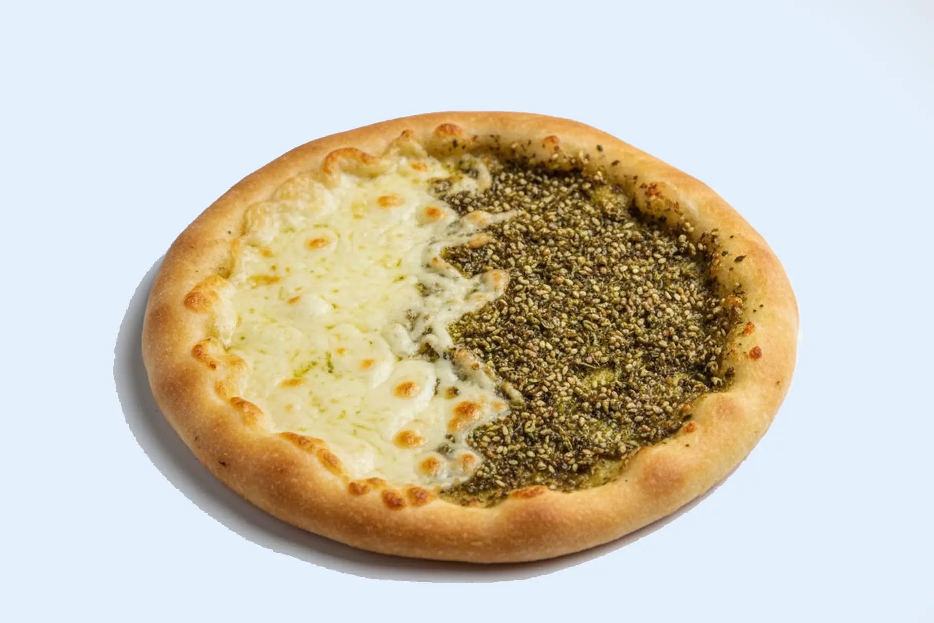 Flatbread combining creamy cheese and zaatar for a balanced, rich and herby taste.