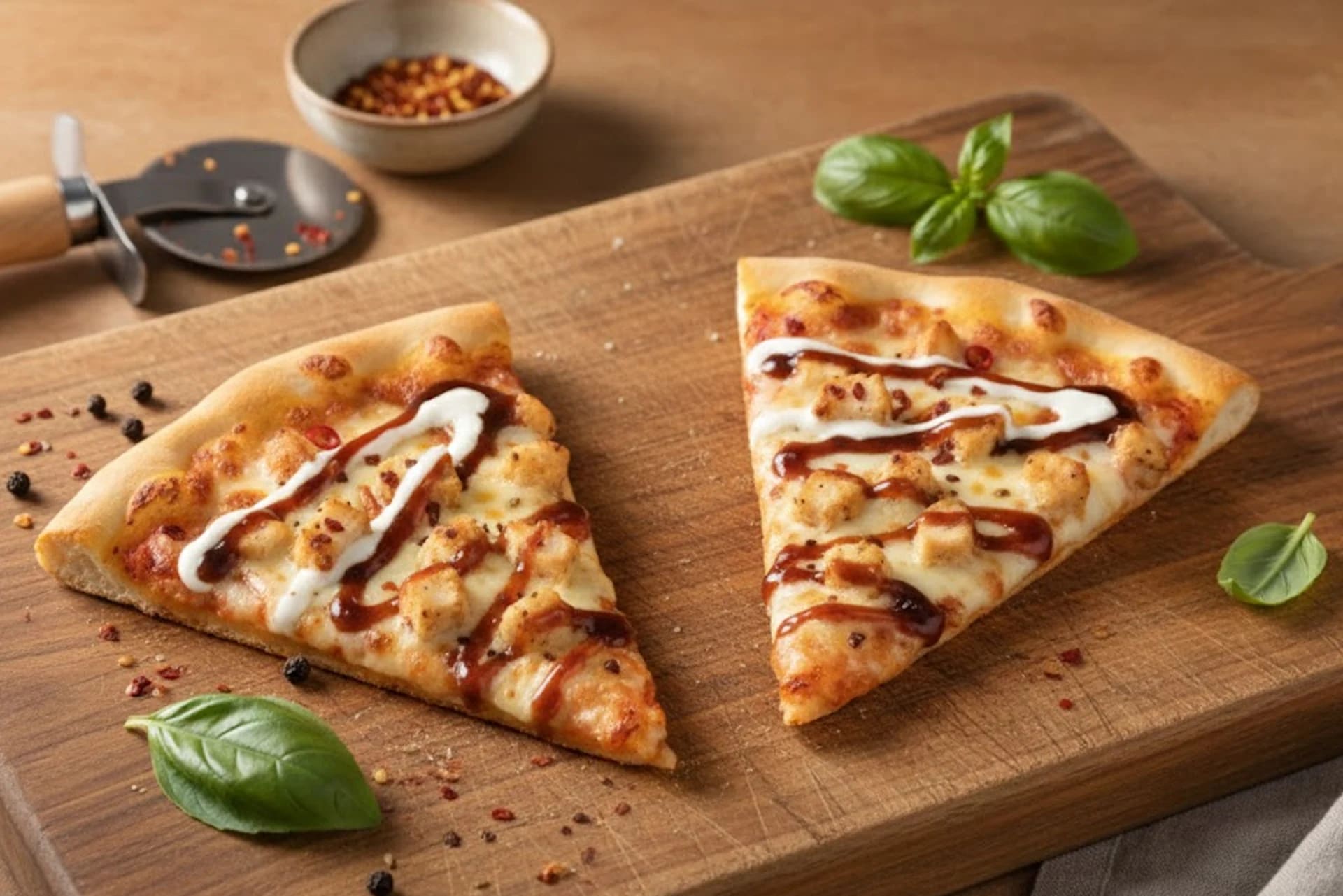 Flaky croissant-style base topped with spicy ranch chicken, cheese, and herbs for a unique fusion pizza.​