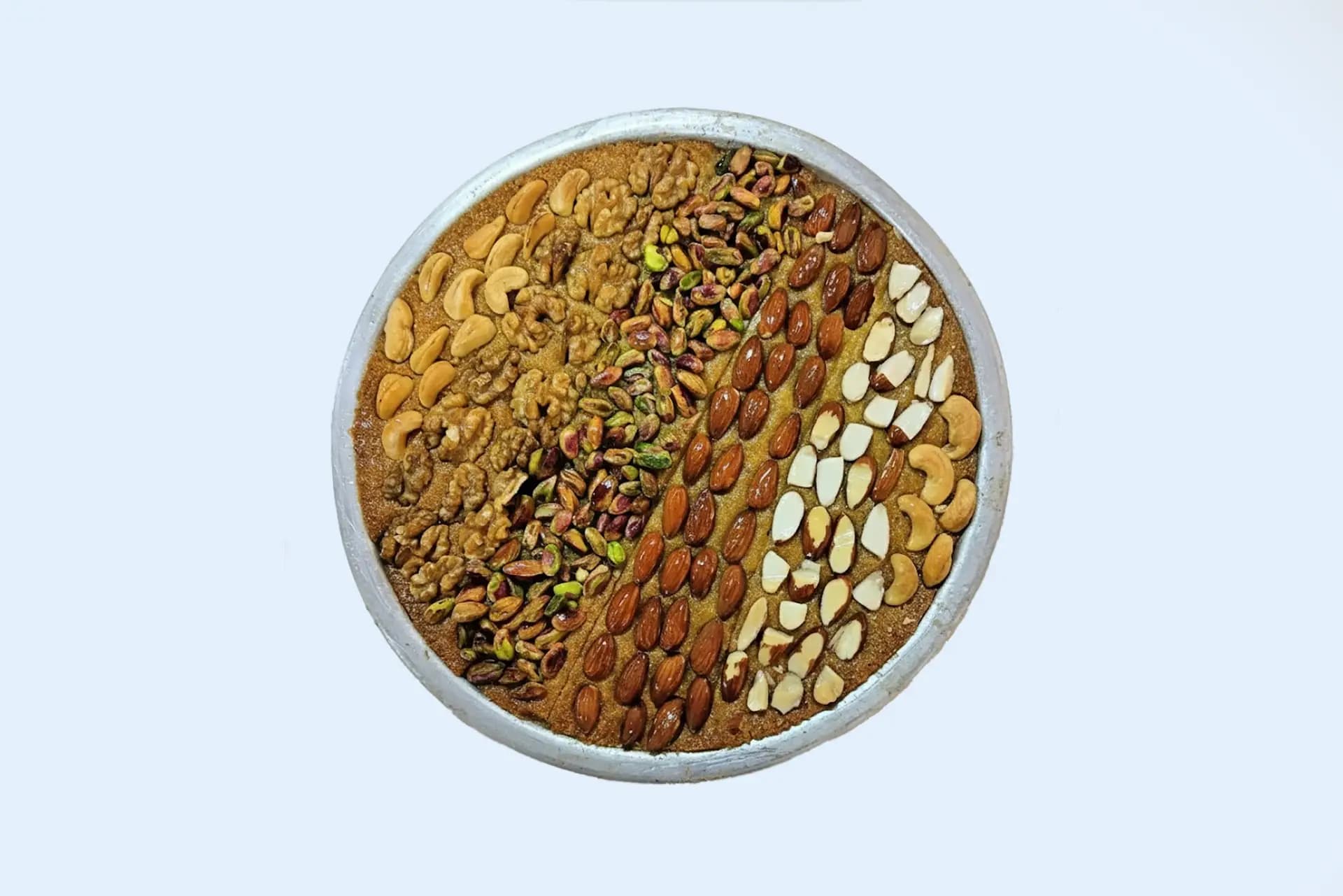 Moist semolina-based dessert baked and soaked in sweet syrup.