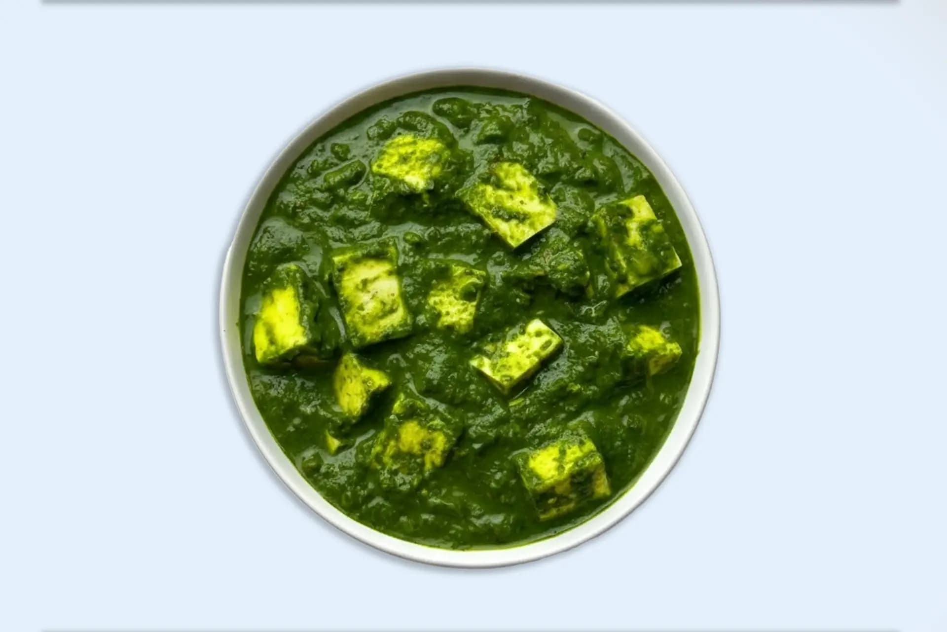 Paneer cubes cooked in smooth spinach gravy.