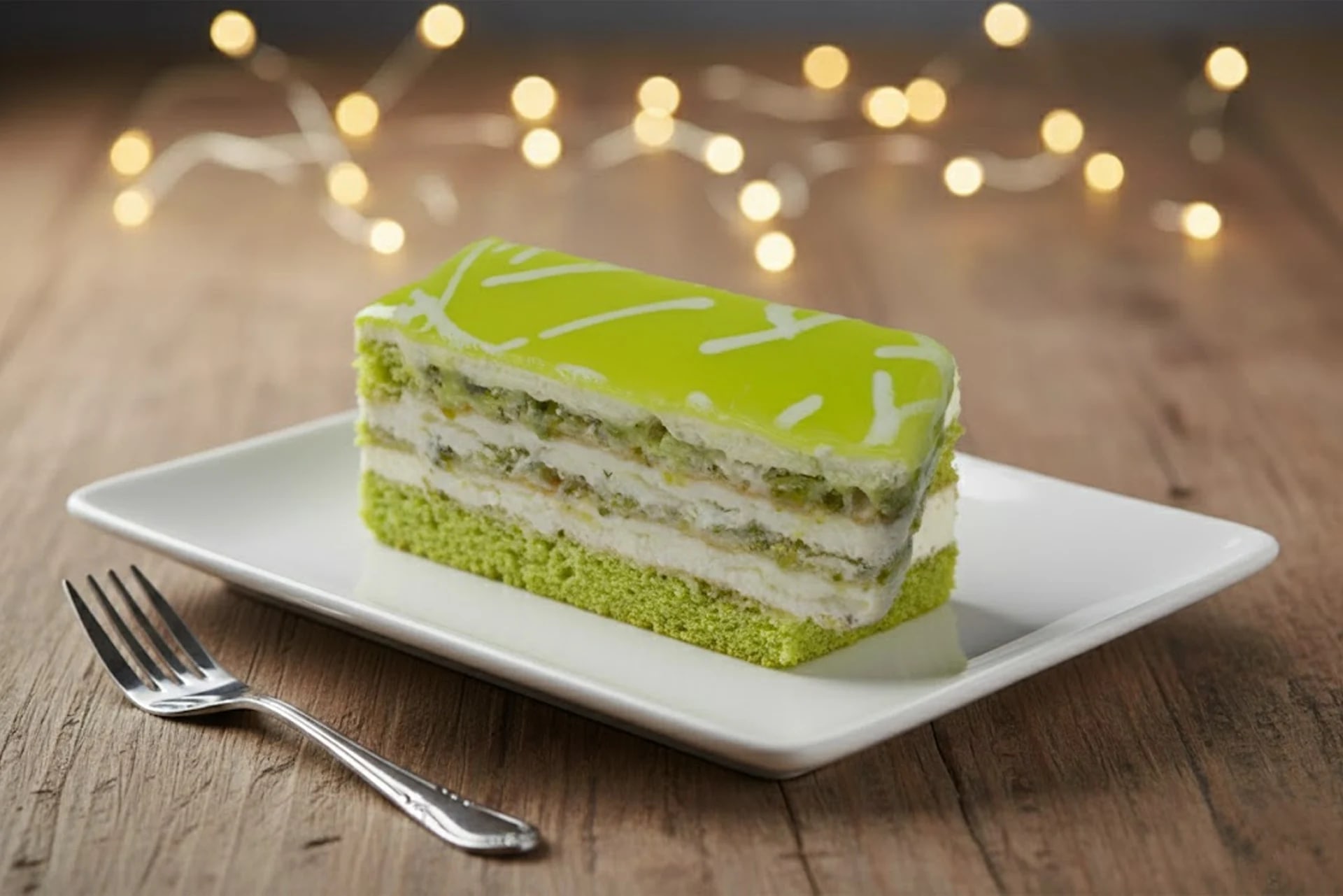 Creamy pistachio-flavored pastry with a rich nutty taste.