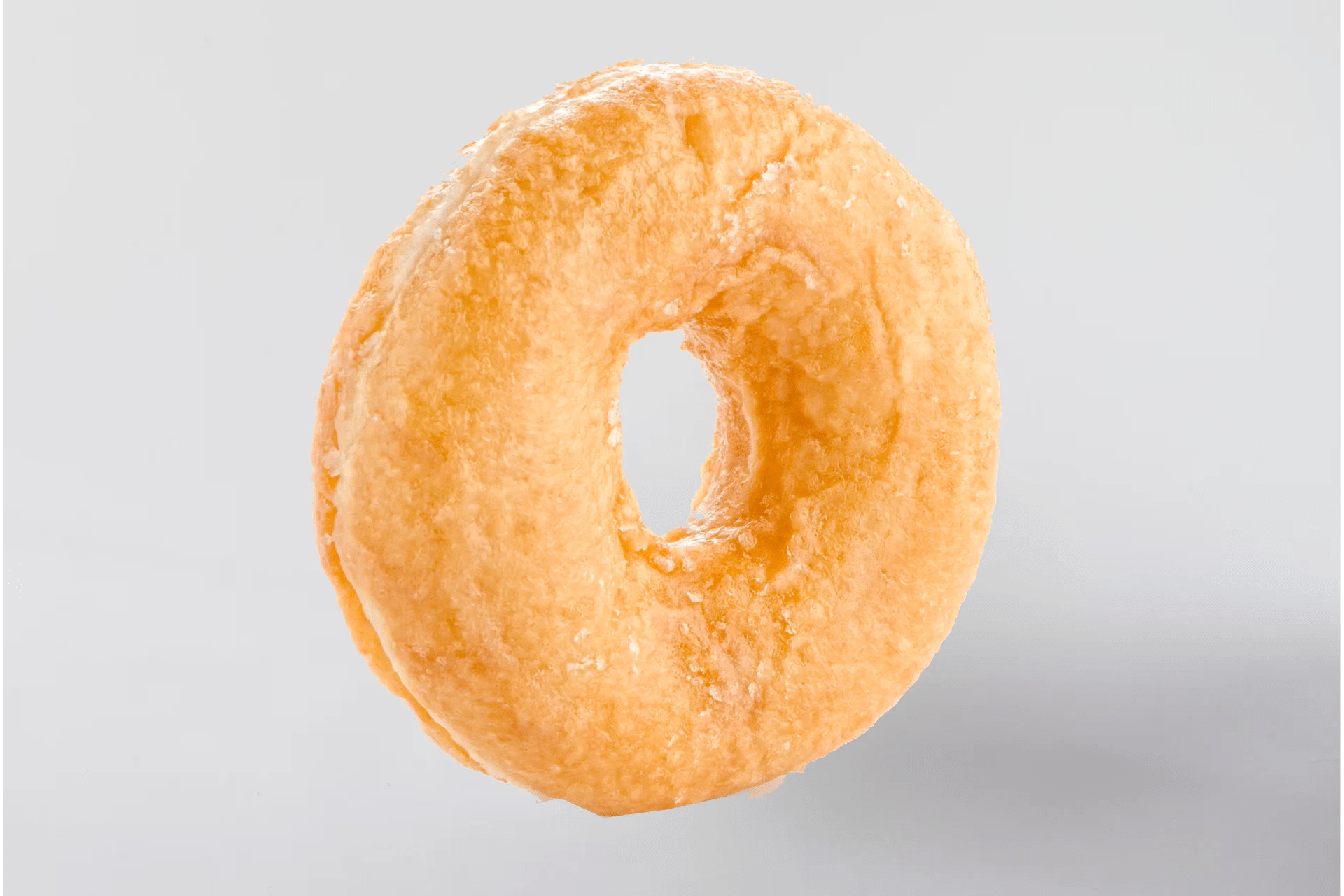 Soft, fluffy ring doughnut with a light golden crust, perfect for a simple, classic sweet treat.